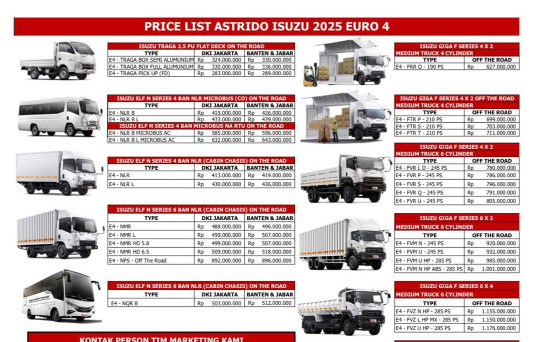 Pricelist Isuzu